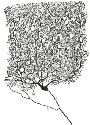 | Keywords: PurkinjeCellCajal.gif Sumar Camara lucida drawing of a Purkinje cell in the cat's cerebellum cortex by Santiago Ramón y Cajal Legend a axon b collateral c dendrites from http //en wikipedia org/wiki/Image PurkinjeCellCajal gif see also the png Version http //en wikipedia org/wiki/Image Purkinje_cell_by_Cajal png PD-old Purkinje cells Drawings with camera lucida |