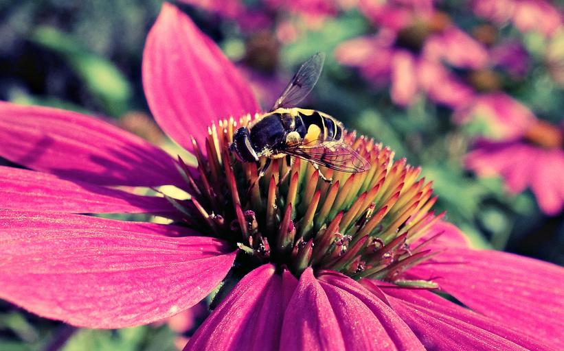 Keywords: purple cone flower cone flower echinacea flower plant summer pink petal bee bee on flower