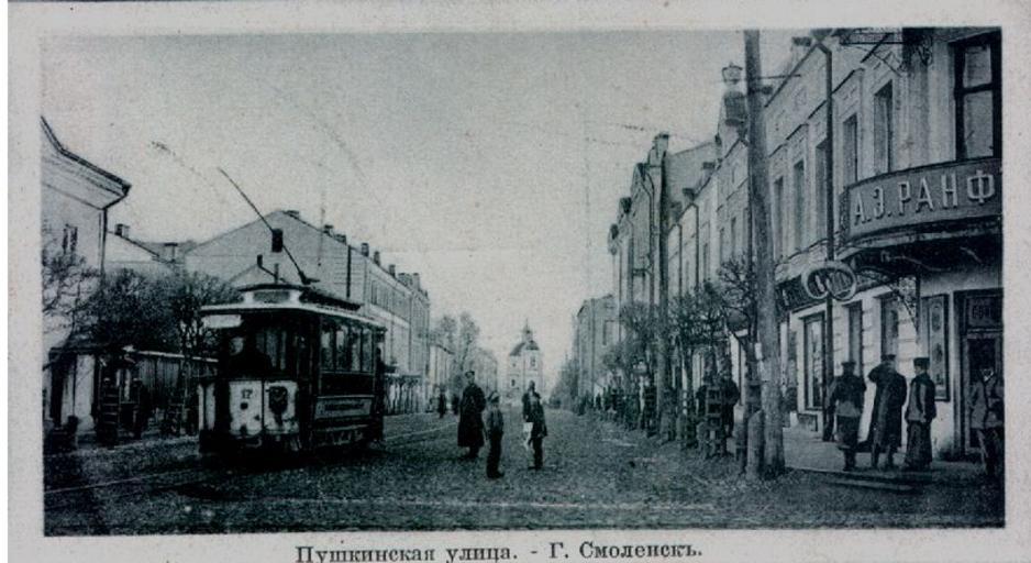 Keywords: Puskinskaya Street 3.png en Pushkin Street now - Lenin Street in Smolensk ru Пушкинская улица ныне - улица Ленина в Смоленске О игинальная отк ытка е установлены before 1917 года PD-RusEmpire 20th-century postcards Postcards of Smolensk