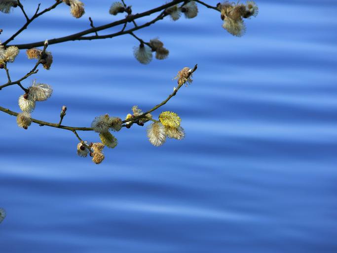Keywords: pussy willow bush water lake background texture summer warm refreshment sun light hairy fluffy branch pasture kitten close nature