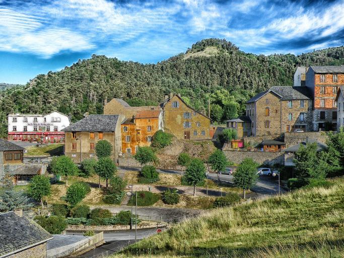 Keywords: puy-de-dome france town buildings architecture mountains forest trees woods nature outside summer spring countryside hdr