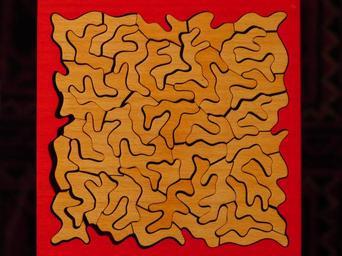 Keywords: puzzle share irregular tricky wood brown red patience individual