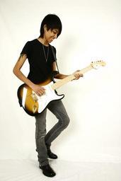 | Keywords: Pyei Sandy.jpg  en Pyei Sandy Thein Tan own Shwemyotaw Musical groups from unidentified countries Guitarists with electric guitars Stratocaster Portrait photographs of men with white background Portrait photographs of men at full length Adolescent boys smiling Boys smiling while standing |
