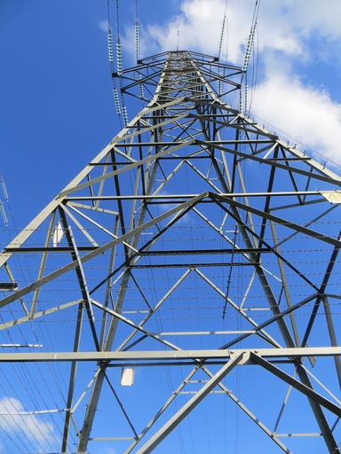 Keywords: pylon electricity blue sky electric infrastructure grid steel energy high lines metal power