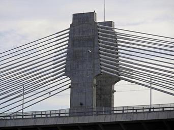 Keywords: pylons concrete suspension wires bridge carrier road railway danube underflow
