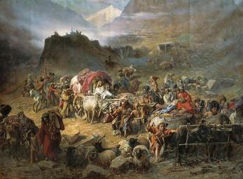 | Keywords: Pyotr Nikolayevich Gruzinsky - The mountaineers leave the aul.jpg The mountaineers leave the aul Оставление го цами аула п и п иближении усских войск http //www bg-gallery ru/image php img_id 836 1872 Pyotr Nikolayevich Gruzinsky 1837-1892 PD-Art Pyotr Nikolayevich Gruzinsky Caucasian War 1817 1864 History of the Caucasus Aul Chokha with fur hat in art 1872 paintings from Russia History of Dagestan Fur fashion in 1872 | ||||