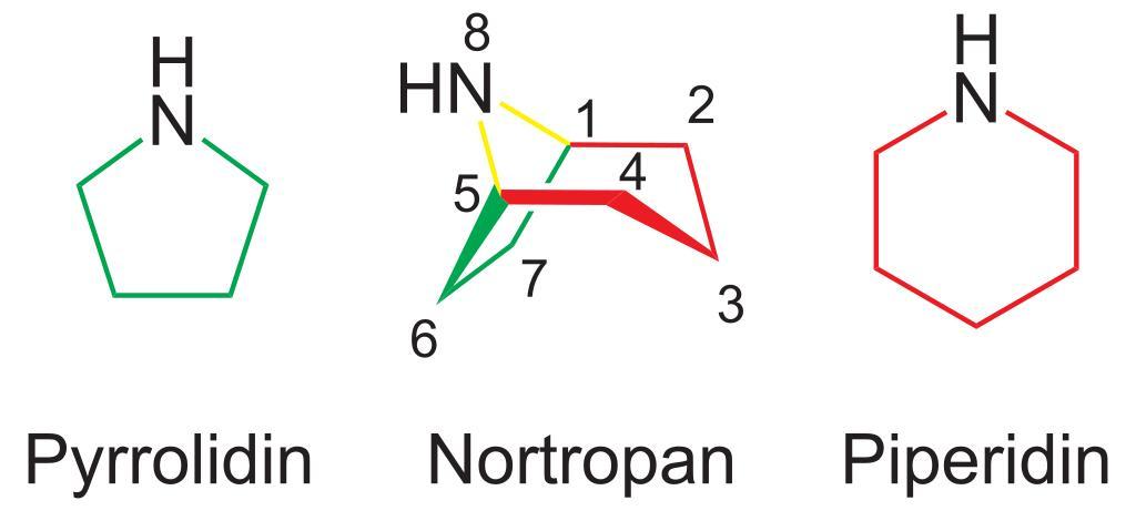 | Keywords: Pyrrolidin Tropan Piperidin.svg Vergleich der Strukturen von Pyrrolidin Nortropan und Piperidin Comparison of the structures of pyrrolidine nortropane and piperidine Comparaison des structures de la pyrrolidine du nortropane et de la pipéridine own 2007-04-07 NEUROtiker Own work all rights released Public domain Piperidine Pyrrolidine Tropane |