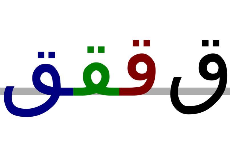 Keywords: Qaf forms with line.svg en Arabic letter qaf<br /> Black isolated form; red initial form; green medial form; blue final form<br /> Font Lucida Sans Unicode own Wickey-nl 2011-04-28 Cc-zero Arabic glyphs with baseline