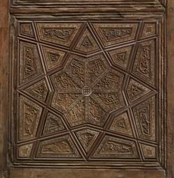 Keywords: Qanbar ibn Mahmud - Mausoleum Doors - Walters 61297 - Detail A.jpg These doors originally opened into the mausoleum or tomb of Imamzada Sulayman the son of a spiritual leader in Iran where Shia Shi'ite Islam became the state religion in the 16th century The doors' intricately carved and inlaid decoration is typical of the ornamentation in religious buildings and includes inscriptions in praise of Ali son-in-law of the prophet Muhammad and the leader of Shia Muslims Panels with radiating star designs evoke the eternal heavens The maker's full name carved in the lower right panel indicates that he was the son of a carpenter and confirms that crafts such as woodcarving were practiced by generations within the same family December 1551-January 1552 early Safavid wood with ivory inlay cm 194 3 103 2 7 2 accession number 61 297 24342 Henry Walters Baltimore date and mode of acquisition unknown Walters Art Museum Henry Walters Acquired by Henry Walters Date A H Muharram 959 Highlights from the Collection The Walters Art Gallery Baltimore 1998-2001 place of origin Dijon France Walters Art Museum license Islamic art in the Walters Art Museum Media contributed by the Walters Art Museum needs category review Media contributed by the Walters Art Museum needs artist review |