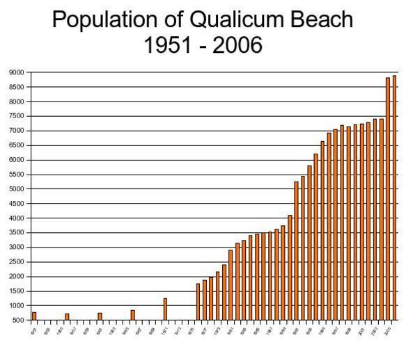 Keywords: QB pop 51-06.jpg Bar graph showing population of population of Qualicum Beach BC by year from 1951 to 2006 own 2007-01-15 Ken Walker kgw lunar ca Own Work released to Public Domain Qualicum Beach British Columbia