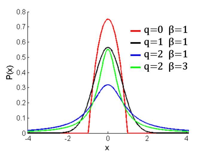 | Keywords: QGaussian2.png en Probability densities of multiple members of the q-gaussian family 2011-06-27 own Purple Post-its cc-zero Uploaded with UploadWizard Probability distributions <source lang 'matlab'> function plotqgaussian x -4 1 01 4 1; figure; hold on; plot x qgaussian x 0 1 '-r' 'LineWidth' 2 plot x qgaussian x 1 1 '-k' 'LineWidth' 2 plot x qgaussian x 2 1 '-b' 'LineWidth' 2 plot x qgaussian x 2 3 '-g' 'LineWidth' 2 function y qgaussian x q beta if q 1; Cq sqrt pi ; elseif q < 1 Cq 2 sqrt pi / 3-q sqrt 1-q exp gammaln 1/ 1-q - gammaln 3-q / 2 1-q ; else Cq sqrt pi /sqrt q-1 exp gammaln 3-q / 2 q-1 - gammaln 1/ q-1 ; end y sqrt beta /Cq qexp -beta x 2 q ; function y qexp x q if q 1 y exp x ; else y 1+ 1-q x 1/ 1-q ; end y 1+ 1-q x < 0 0; </source> |