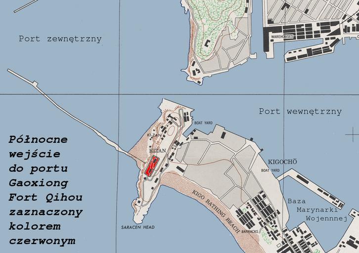 | Keywords: Qihou fort mapa polska wersja.jpg pl Mapka północnego wejścia do portu Kaohsiung/Gaoxiong z zaznaczonym położeniem fortu Qihou s Port Wewnętrzny - Inner Harbour Port Zewnętrzny - Outer Harbour Baza Marynarki Wojennej - Navy Base own from Takao N2235 0-E12014/4 0x4 2 map Formosa City Map Series U S Army Map Service 1945-; public domain; scan of the map courtesy of the University of Texas Libraries The University of Texas at Austin Felis domestica based on Takao N2235 0-E12014/4 0x4 2 map Formosa City Map Series U S Army Map Service 1945-; public domain; scan of the map courtesy of the University of Texas Libraries The University of Texas at Austin 2010-05-02 Cihou Fort Maps of Kaohsiung City Maps of the history of Taiwan PD-USGov-Military Felis domestica |