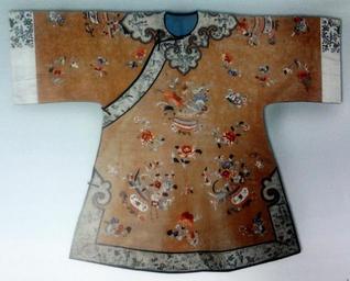 | Keywords: Qing Dynasty Female robe Ao.jpg Qing Dynasty century 19 embroidery silk cm 100 85 Institution National Museum Warsaw accession number SKAZsz 2609 object history ProvenanceEvent 1947 bequest National Museum Warsaw Zofia Okęcka credit line Marcin Jacoby 2009 Sztuka chińska w zbiorach Muzeum Narodowego w Warszawie / Chinese Art in the Collection of the National Museum in Warsaw Muzeum Narodowe w Warszawie ISBN 978-83-7100-897-9 cat no IV 2 p 282 own BurgererSF See below Cc-zero DEFAULTSORT 1801-1900; Female robe Ao Chinese textiles in the National Museum in Warsaw Clothing of the Qing Dynasty |