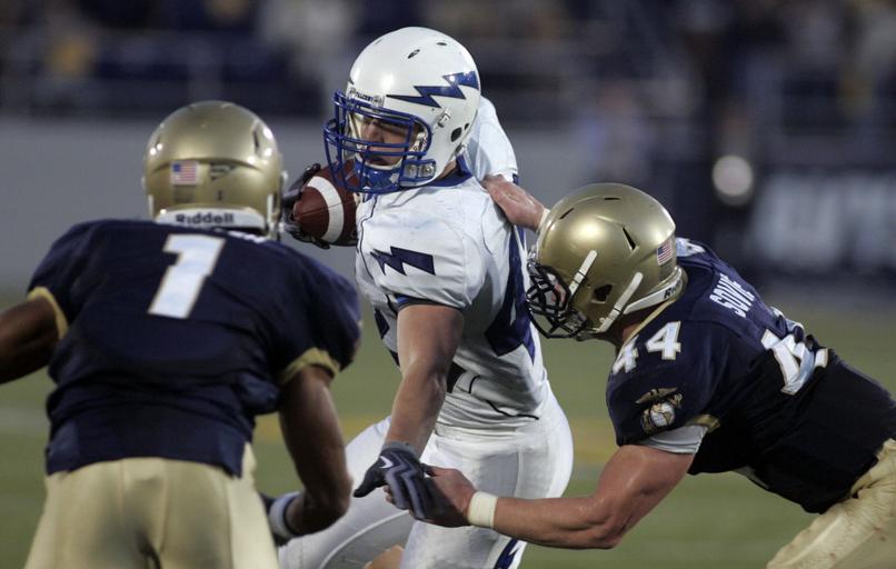 Keywords: quarterback sack american football defense rush team loss yardage linemen college game stadium competition players tackle linebacker