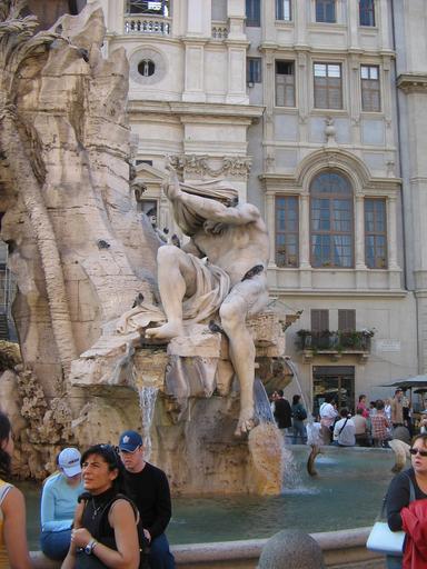 Keywords: Quattro fiumi d.JPG The river-god Nile who is covering its face as a symbol of the fact that at that time the whereabouts of its springs were unknown by Gianlorenzo Bernini 1651 from the Fontana dei Quattro Fiumi in Rome Picture by Carlo Morino 16/X/2005 Le dieu-fleuve Nil par Gianlorenzo Bernini 1651 détail de la fontaine des Fleuves à Rome Photo prise par Carlo Morino 16/X/2005 Statua allegorica del dio-fiume Nilo che si copre il volto per simboleggiare il fatto che all'epoca la localizzazione delle sue sorgenti era sconosciuta Dettaglio della Fontana dei Quattro Fiumi di Gianlorenzo Bernini in Piazza Navona Roma 1651 Foto di Carlo Morino 16/X/2005 2005-10-16 own assumed Carlomorino Fontana dei fiumi Rome Allegories of river Nile Rome ImageNote 1 522 539 464 348 1536 2048 2 The head is veiled to symbolize that the source of Nile which the sculpture represents was not yet known at that time ImageNoteEnd 1