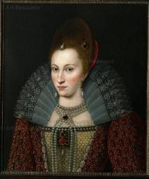 Keywords: stuart english royalty englishroyalty portrait 16th century 16thcentury 17th century 17thcentury scotland united kingdom unitedkingdom britain people Anne of Denmark (12 December 1574 – 2 March 1619) was queen consort of Scotland, England, and Ireland as the wife of King James VI and I.[1] The second daughter of King Frederick II of Denmark, Anne married James in 1589 at the age of fourteen and bore him three children who survived infancy, including the future Charles I. She demonstrated an independent streak and a willingness to use factional Scottish politics in her conflicts with James over the custody of Prince Henry and his treatment of her friend Beatrix Ruthven. Anne appears to have loved James at first, but the couple gradually drifted and eventually lived apart, though mutual respect and a degree of affection survived.[2] In England, Anne shifted her energies from factional politics to patronage of the arts and constructed a magnificent court of her own, hosting one of the richest cultural salons in Europe.[3] After 1612, she suffered sustained bouts of ill health and gradually withdrew from the centre of court life. Though she was reported to have died a Protestant, evidence suggests that she may have converted to Catholicism at some stage in her life.[4] Historians have traditionally dismissed Anne as a lightweight queen, frivolous and self-indulgent.[5] However, recent reappraisals acknowledge Anne's assertive independence and, in particular, her dynamic significance as a patron of the arts during the Jacobean age. Anne of Denmark (12 December 1574 – 2 March 1619) was queen consort of Scotland, England, and Ireland as the wife of King James VI and I.[1] The second daughter of King Frederick II of Denmark, Anne married James in 1589 at the age of fourteen and bore him three children who survived infancy, including the future Charles I. She demonstrated an independent streak and a willingness to use factional Scottish politics in her conflicts with James over the custody of Prince Henry and his treatment of her friend Beatrix Ruthven. Anne appears to have loved James at first, but the couple gradually drifted and eventually lived apart, though mutual respect and a degree of affection survived.[2] In England, Anne shifted her energies from factional politics to patronage of the arts and constructed a magnificent court of her own, hosting one of the richest cultural salons in Europe.[3] After 1612, she suffered sustained bouts of ill health and gradually withdrew from the centre of court life. Though she was reported to have died a Protestant, evidence suggests that she may have converted to Catholicism at some stage in her life.[4] Historians have traditionally dismissed Anne as a lightweight queen, frivolous and self-indulgent.[5] However, recent reappraisals acknowledge Anne's assertive independence and, in particular, her dynamic significance as a patron of the arts during the Jacobean age. |