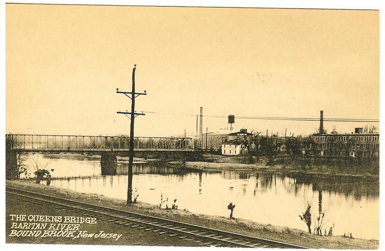Keywords: Queen's Bridge, South Bound Brook.jpg en Photo of Queens Bridge South Bound Brook and Ruberroid complex taken from Bound Brook side of Raritan River Scanned postcard Author PD-Art History of New Jersey South Bound Brook New Jersey Bridges in New Jersey |
