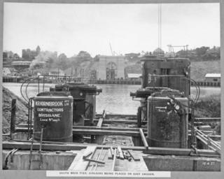 View Original:Queensland State Archives 3463 South main pier airlocks being placed on east caisson Brisbane 16 April 1937.png (720x576)