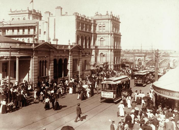 Keywords: Queensland State Archives 5166 Trams and crowd scene in Queen Street near George Street Brisbane c 1899.png en Trams and crowd scene in Queen Street near George Street Brisbane 1899 http //www archivessearch qld gov au/Image/DigitalImageDetails aspx ImageId 5166 Preferred citation Queensland State Archives Digital Image ID 5166 ID label 1367620 http //www archivessearch qld gov au/Search/AgencyDetails aspx AgencyID 1993 Lands Department Survey of Lands Branch Photographic Branch en Copyright expired Information field Decade 1890-1899 Information field Place en Brisbane City Information field Material Type en Photographic material Information field Type en Image PD-Australia QSA media uploaded by User 99of9 Photographic material from the Queensland State Archives 1899 in Brisbane Queen Street Brisbane George Street Brisbane Second Victoria Bridge Brisbane Trams in Brisbane Treasury Building Brisbane |
