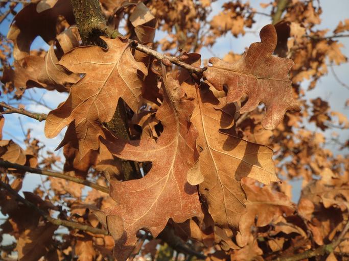 Keywords: quercus robur english oak pedunculate oak french oak leaves withered faded autumn flora botany plant tree