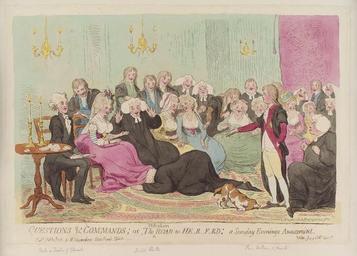 | Keywords: Questions and commands; or, the mistaken road to He-r-f-rd; a Sunday evenings amusement by James Gillray.jpg Questions and commands; or the mistaken road to He-r-f-rd; a Sunday evenings amusement by James Gillray died 1815 published 1788 See source website for additional information Men and women playing parlor game Judge with his head under the edge of a woman's skirts kissing her foot This set of images was gathered by User Dcoetzee from the National Portrait Gallery London website using a special tool All images in this batch have been confirmed as author died before 1939 according to the official death date listed by the NPG D12372 1788 James Gillray died 1815 PD-old-100 National Portrait Gallery London James Gillray Gender-role reversals or women in power |