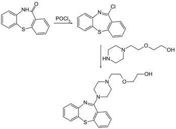 Keywords: Quetiapine synthesis is.svg Synthesis of Quetiapine Own 2010-12-20 Codc <span class signature-talk >talk</span> PD-chem Cc-zero Quetiapine Drug syntheses