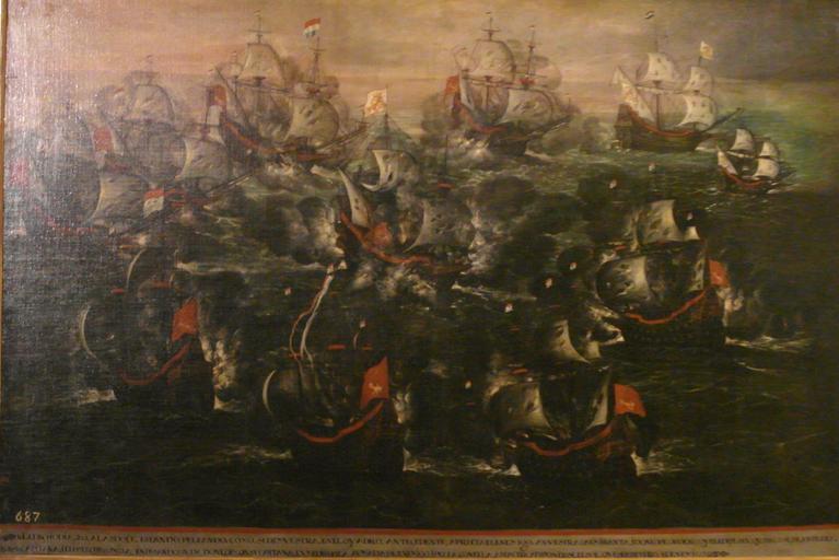 | Keywords: QuintaVistaDeLaCampañaDeLopeDeHocesEnBrasil.jpg Quinta vista de la campaña del almirante Lope de Hoces en Brasil Siglo XVII oil canvas Size cm Institution Museo Naval de Madrid object history exhibition history credit line accession number own cc-by-sa-4 0 PD-old-100 17th-century paintings in the Naval Museum of Madrid Juan de la Corte 1630s naval battles Uploaded with UploadWizard | ||||