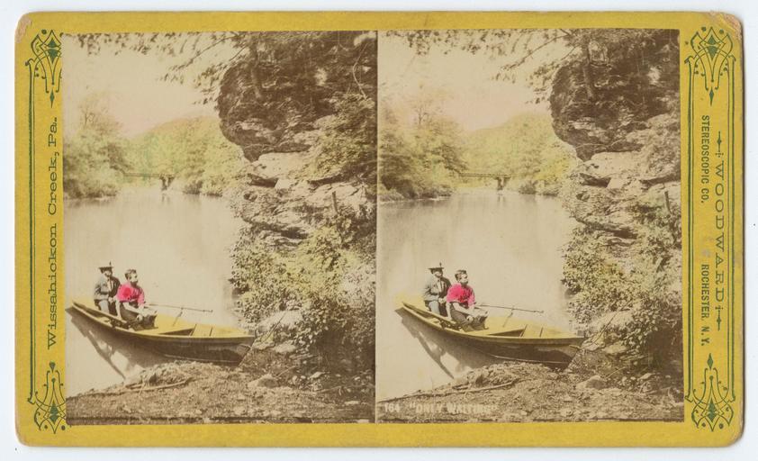 Keywords: stereographs philadelphia fairmount park fairmountpark wissahickon creek wissahickoncreek rowboats photo border drawing Shows two men waiting in a rowboat at a rocky alcove on the Wissahickon Creek, late nineteenth-century. Hartwell Avenue Bridge and woodland are visible in the background. Accession number: P.2011.47.1057 Shows two men waiting in a rowboat at a rocky alcove on the Wissahickon Creek, late nineteenth-century. Hartwell Avenue Bridge and woodland are visible in the background. Accession number: P.2011.47.1057 |