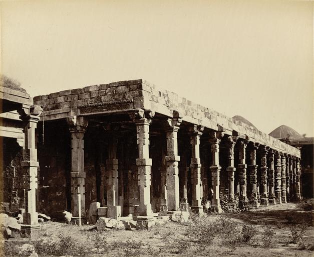 Keywords: Qutb Minar compound, Delhi in the 1870s.jpg en Photograph from the Lee-Warner Collection of Hindu colums in the Quwwat-ul-Islam Mosque in Delhi taken by John Edward Saché in the 1870s The Qutub Minar complex in southern Delhi was initiated by Qutub-ud-din Aibak the first Sultan of Delhi and the founder of the Slave Dynasty 1206-90 to celebrate the onset of Islamic rule in India in 1192 The Quwwat-ul-Islam or Might of Islam Mosque is one of the earliest surviving mosques in India and stands in the Qutb Minar enclosure It was begun in 1193 by Qutub-ud-din Aibak and was completed four years later with further additions made by later Sultans in the 13th and 14th centuries It is a fine example of Islamic architecture employing Islamic principles of accurate construction and geometric ornamentation but utilising Indian building traditions It was built on the site of Rai Piathora ™s Hindu temple using the remains from 27 other Hindu and Jain temples Carved Hindu motifs on salvaged and recyled masonry are found throughout the mosque in combination with later Islamic arabesque patterns and Quranic inscriptions The photograph is taken from an album containing mainly architectural and topographical views of sites throughout Western and Northern India including a number of E D Lyon's views of Ahmadabad The album was formerly in the collection of Sir William Lee-Warner 1846-1912 who served in the Indian Civil Service and was a Member of the Council of India between 1902 and 1912 s 1870 http //www oldindianphotos in/2009_04_12_archive html Creator John Edward Sache other versions Custom license marker 2014 10 28 1882 Uploaded with UploadWizard Delhi in the 1870s Qutb Minar John Edward Sache |