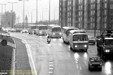 Keywords: xb-63-97 xb6397 daf mb200 bova benelux smit van rooijen vanrooijen outdoor Amsterdam 04-04-1973. Coaches with AZ67 supporters cross Amsterdam on their way to an unknown match. The forst coach is XB-63-97, a DAF MB200DOL605 / BOVA of C. de Jong which was new in May 1964. The 2nd one is a Smit; the 3rd a DAF / Van Rooijen; the 4th a BOVA Benelux integral and at the end another DAF / BOVA. Amsterdam 04-04-1973. Coaches with AZ67 supporters cross Amsterdam on their way to an unknown match. The forst coach is XB-63-97, a DAF MB200DOL605 / BOVA of C. de Jong which was new in May 1964. The 2nd one is a Smit; the 3rd a DAF / Van Rooijen; the 4th a BOVA Benelux integral and at the end another DAF / BOVA.