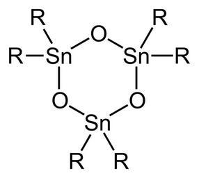| Keywords: R2SnO-cyclic-trimer-2D.png Cyclic trimer structure adopted by diorganotin oxides R<sub>2</sub>SnO<sub>n</sub> where R is a bulky group such as tert-butyl or mesityl Image based on several crystal structures in the CSD discussed in http //dx doi org/10 1016/S0010-8545 02 00178-9 Coord Chem Rev 2002 235 1 “52 Own 2011-12-23 Ben Mills Benjah-bmm27 Images by Ben Mills Diorganotin oxides | ||||