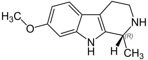 Keywords: (R)-Tetrahydroharmine Structural Formula V.1.svg R -Tetrahydroharmine_Structural_Formula own 2013-08-07 Jü Harmala alkaloids Cc-zero