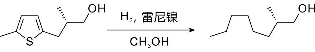 Keywords: Ra-Ni Thiophene Scheme zh.svg Reaction Raney nickel on thiophene based on Image Ra-Ni Thiophene Scheme png Image 噻吩环脱硫 JPG 2007-12-04 User PhiLiP Ra-Ni Thiophene svg Desulfurization reactions