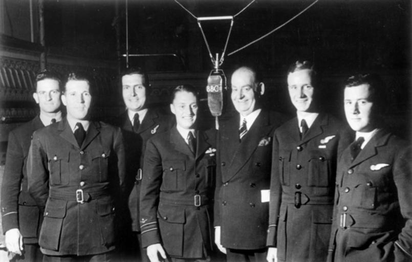 Keywords: RAAF airmen BBC ANZAC Hour Radio show 1942 (AWM photo SUK10345).jpg en A group of RAAF airmen on the set of the BBC's Anzac Hour programme broadcast from London Included in the picture is Squadron Leader James Catanach centre who was executed by the Gestapo after the Great Escape in 1944 SUK10345 Not stated at source 1942-07-24 PD-Australia PD-US-1996 Military history of Australia during World War II |