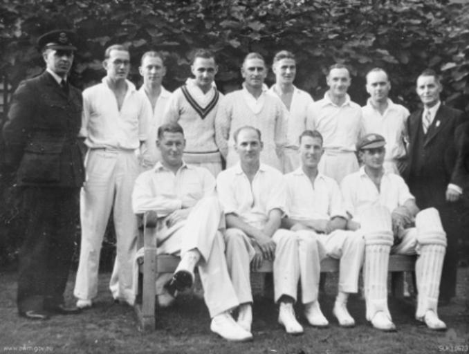 | Keywords: RAAF cricket team 1943.jpg London England 1943-09-11 The first official cricket match between the RAAF and the Royal Air Force RAF was played at Lords cricket ground on 11 September 1943 http //newspapers nla gov au/ndp/del/article/11789552 The game was won by the RAAF who scored 164 runs for eight wickets after the RAF had closed their innings at nine wickets for 105 runs Group portrait of the RAAF team shows the team as follows from left to right Back Row Squadron Leader Wilfred B Tart 253218 in uniform ; Pilot Officer A McDonald Victoria ; Sergeant Ross M Stanford 416624 South Australia ;http //www cricinfo com/ci/content/player/7827 html Sergeant James A Workman 28478 South Australia ;http //www cricinfo com/australia/content/player/8380 html Flight Lieutenant C Bruce Andrew 251991 Victoria ;http //en wikipedia org/wiki/Bruce_Andrew Sergeant Keith R Miller 410608 Victoria ;http //en wikipedia org/wiki/Keith_Miller Flight Lieutenant Keith S Campbell D F C 4043710 Queensland ; Flying Officer Donald Ross 205879 Victoria ; Mr S A Hipple in suit the umpire ; Flight Officer Arthur W Roper 411527 New South Wales ; Sergeant E A Williams or W Williams South Australia ; Corporal W Yates New South Wales ; Flight Officer Stanley G Sismey 403605 New South Wales ;http //www cricinfo com/ci/content/player/7625 html and the captain of the team Flight Officer D Keith Carmody 420138 New South Wales http //www cricinfo com/ci/content/player/4535 html Australian War Memorial http //www awm gov au Search this website with ID code SUK11623 s 1940 Author PD-Australia Keith Miller Royal Australian Air Force in World War II 1943 in cricket Carmody surname |