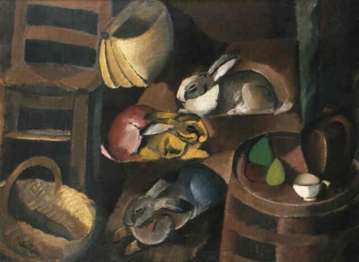 | Keywords: Rabbits and Basket by Charles Dufresne.jpg Artwork creator Charles Dufresne 1919 ucfirst oil on canvas cm 96 129 5 unknown place of discovery object history exhibition history Exposition Internationale d'art moderne 8 111 Lapins et panier credit line dufresne signature bottom left ~ accession number place of creation Paris presumably www artnet com http //www artnet com Home http //www artnet com/artists/charles-dufresne/les-lapins-VkUMcoOQrAIqEm5hpi9c-g2 Info PD-old-auto 1938 Charles Dufresne |