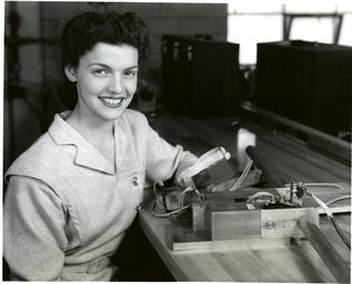| Keywords: RabinowJacob 034.jpg  Circa 1947-1950 Close-up of the apparatus used to test the hlding power of energized iron particle-in-oil mixture MBS staff member Patricia Hickok is shown holding the 2-inch square plate which is immersed in a magnetic fluid filling the chamber between the pole pieces of the electromagnet assembly on the bench in front of her When 10 watts of power are supplied to the coil the plate will sustain a pull of 200 pounds without moving The chains that develop when the magnetic coil is energized are shown in NBS photo 1500 Jacob Rabinow invented the Magnetic Particle Clutch in 1947 during his work on ordnance at the National Bureau of Standards The particle clutch used a mixture of light lubricating oil and powdered carbonyl iron inside a chamber connecting two free spinning plates When an electromagnet attached to the chamber was energized the iron particles would magnetize and attract each other producing an almost solid mass which locked the plates together Controlling the magnetic flux would control the amount of torque between the plates Because Rabinow invented the Magnetic Particle Clutch as part of his work at the National Bureau of Standards the United States Government owned the U S patent However in partnership with his brother Joseph Rabinow did file for patents in 22 foreign countries Due of the simple design precise torque control smooth operation and long life the device found wide application It was used in Renault and Subaru automobiles in Europe and Japan in airplane controls and in the disc file of the IBM RAMAC computer Reference Inventing for Fun and Profit Jacob Rabinow San Francisco Press San Francisco CA 1990 pp 49-55 National Institute of Standards and Technology National Institute of Standards and Technology PD-USGov-NIST PD-USGov National Bureau of Standards Magnetic_particle_clutches Women at work in the 20th century |
