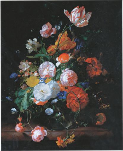 | Keywords: Rachel Ruysch - Flowers in a glass vase on a marble slab formerly of Munich Alte Pinakothek.jpg en Roses tulips and other flowers in a glass vase on a marble ledge 38127 1709 oil on canvas 78 cm x 64 cm Eijk and Rose-Marie van Otterloo Collection http //www christies com/lotfinder/lot/rachel-ruysch-roses-tulips-and-other-flowe-4684708-details aspx Creator Rachel Ruysch Commissioned by Elector-Palatine Johann Wilhelm Düsseldorf; collection Mannheim Kunsthalle in 1780 no 295; Collection Munich Holgarten Galerie in 1805 no 924; Collecton Munich Pinakothek in 1836; deaccessioned in line with Nazi policy from the Alte Pinakothek in 1937; sold Christie's New York for 464 000 on 6 April 2006 other versions PD-Art-100 Uploaded with UploadWizard Rachel Ruysch Images from Christie's Still life paintings of flowers Eijk and Rose-Marie van Otterloo Collection |