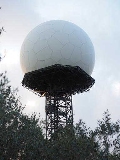 Keywords: radar equipment balloon-like white ball transmitter transmission communication navigation radar signal air traffic spherical puig de randa mallorca randa
