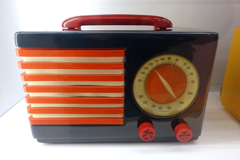 Keywords: Radio Model 400 (FC-400), Norman Bel Geddes, Emerson, Catalin case - Museum für Angewandte Kunst Köln - Cologne, Germany - DSC09454.jpg Industrial design right This protection period has passed and hence this work is now in the public domain 2015-11-28 10 32 50 own Daderot other versions cc-zero Radios in the Museum für Angewandte Kunst Köln Emerson Radio Model 400 |
