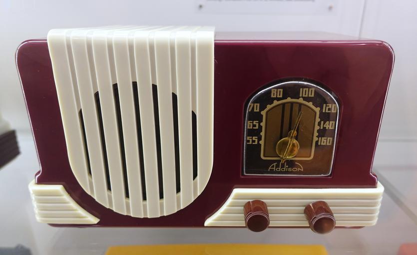 Keywords: Radio, Model 52A, Addison Industries, Toronto, Canada, 1940, Catalin case - Museum für Angewandte Kunst Köln - Cologne, Germany - DSC09450.jpg Industrial design right This protection period has passed and hence this work is now in the public domain 2015-11-28 10 32 33 own Daderot other versions cc-zero Radios in the Museum für Angewandte Kunst Köln Addison radio receivers |