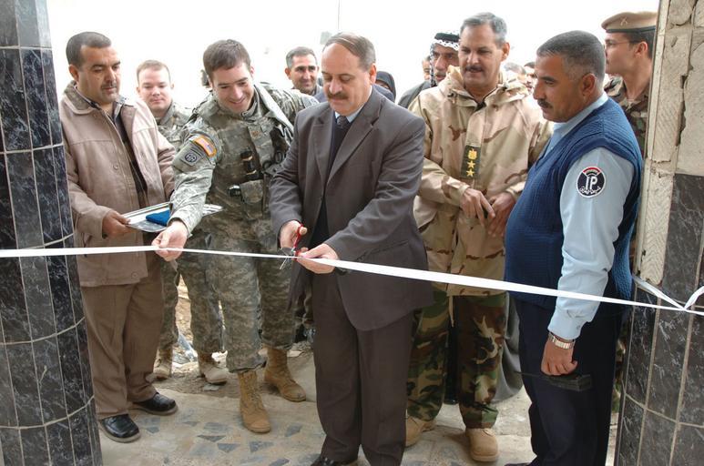 Keywords: Radio Station Opens Doors, Gives Chance for Free Speech DVIDS34388.jpg en Members of the Iraqi Army and police department Balad Ruiz government officials and Soldiers from the 5-73 Cavalry Regiment 82nd Airborne Division join Balad Ruiz mayor Mayor Mohamed Maroof Al-Hussein in the ribbon cutting ceremony opening the doors to the Al Noor radio station 2006-12-18 Spc Ryan Stroud https //www dvidshub net/image/34388 34388 2006-12-24 10 26 BALAD IQ PD-USGov 82nd Airborne Division Images from DoD uploaded by Fæ |