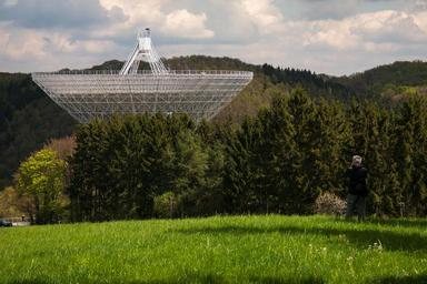 Keywords: radio telescope effelsberg photographer man forest meadow white eifel telescope space antenna research astronomy received on large telescope to listen human technology max planck institute science bad münstereifel parabolic mirrors