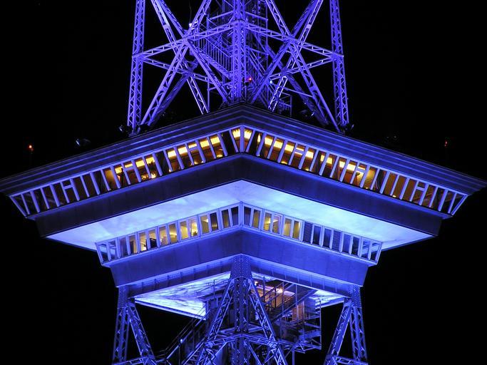 Keywords: radio tower berlin night building architecture lighting blue stahlbau platform observation deck