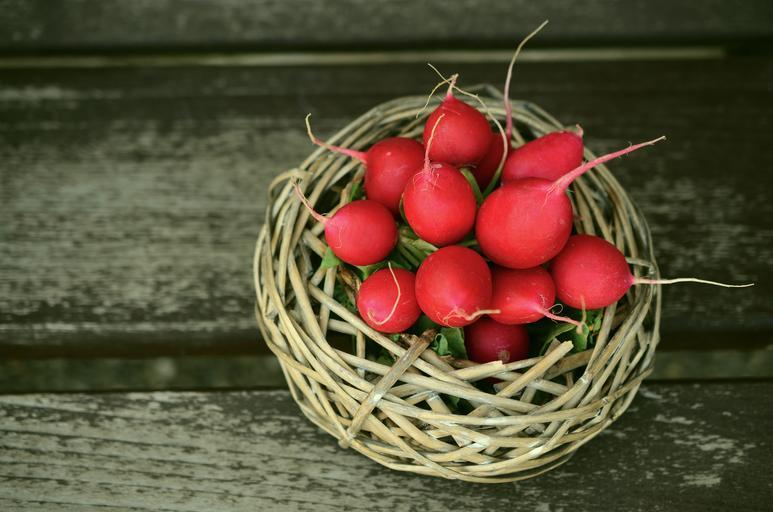 Keywords: radishes red vegetables frisch federal government eat food vitamins vegetarian biological nature wood bio healthy basket nutrition harvest