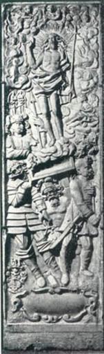 | Keywords: Raeapteek - Burchard Bélavary - 1636 (2).jpg fr Jean III Burchard Bélavary fait sculpter sur pierre la mort de Notre Seigneur la Résurrection et en dessous l'effigie de sa mère Dorothé de Sproekelsen et celle de son aïeul Jean Ier en costume hongrois; on y voit aussi celle d'un personnage en armure complète qui représentee son père Jean II mort en cette même année 1636 1636 Musée d'Histoire de Tallinn Estonie 1636 auteur inconnu commanditaire Jean III Burcharnd von Belavary de Sycava 1605-1671 other versions cc-zero Uploaded with UploadWizard Reliefs in Tallinn Raeapteek 1636 sculptures |