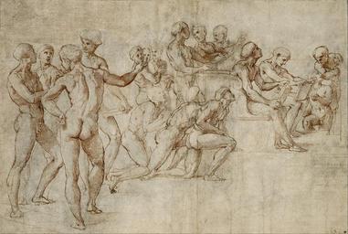 View Original:Raffael_(Raffaello_Santi)_-_Sketch_for_the_lower_left_section_of_the_"Disputa"_-_Google_Art_Project.jpg (2501x1683)