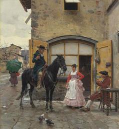 Keywords: Raffaello Sorbi - Stopping for a Drink.jpg Artwork Creator Raffaello Sorbi 1888 oil on canvas cm 50 8 46 35 Private collection place of discovery object history exhibition history credit line Raf Sorbi 1888 signature/date lower right ~ accession number place of creation 5613402 2592 63 Custom license marker 2015 06 26 PD-old-auto-1923 1931 Uploaded with UploadWizard Images from Christie's Raffaello Sorbi Drinking in paintings Paintings of men on horseback 1888 paintings 19th-century paintings in private collections Paintings with signatures lower right Paintings with years of production artist |