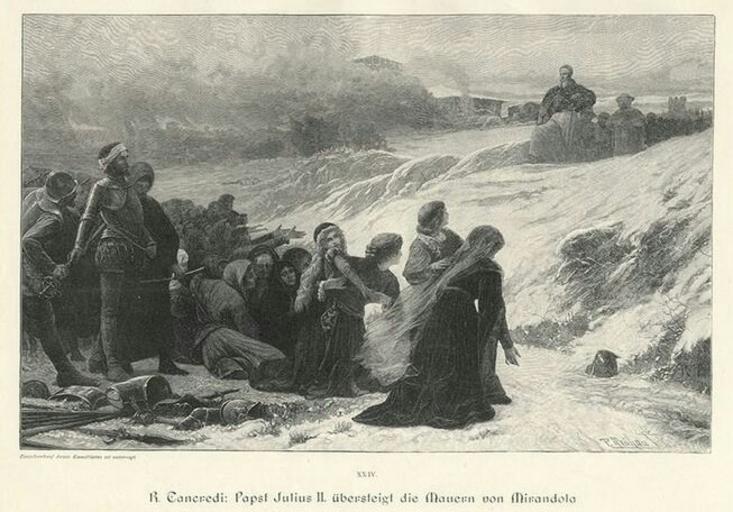| Keywords: Raffaello Tancredi - Papst Julius II übersteigt die Mauern von Mirandola.jpg it Papa Giulio II supera le mura di Mirandola de Papst Julius II übersteigt die Mauern von Mirandola 1890 ebay it creator Raffaello Tancredi other versions PD-Art PD-old-auto-1923 1916 Raffaello Tancredi Siege of Mirandola 1510 |
