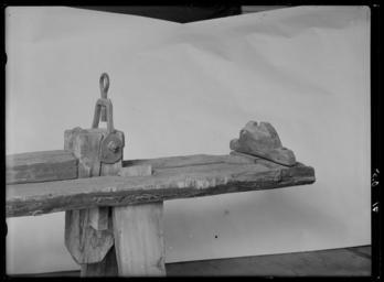 Keywords: Räffelbänk, 1700-talets slut, från smedja i Sundets by, Råneå - Livrustkammaren - 26687.tif Bänk av obehandlad grovhyvlad furu l ca 4000 mm b ca 300 mm sammansatt av två bräder b 150 mm tjocklek 60 mm Två intappade utåtställda benpar h 450 och 510 mm det bakre kraftigare och försett med tvärslå och stödbräda på bänkens undersida Ca 100 mm från framänden fastspikat en uppstående träplatta med konturerad överkant och skålat stöd för bösspipan <br/><br/>Ca 500 mm därbakom fästanordning för pipan bestående av stock h 350 mm inkl tapp b 150 mm tjocklek 100 mm fäst med tapp genom bänken På stockens översida en stålbygel för fästskruv för pipan ringformigt huvud Under skruven på stocken en stålplatta med stopplist baktill och vid vardera sidan ett runt hål för styrpinnar plattans framände nedåtböjd över stockens framsida <br/><br/>Från fästanordningen löper på bänkens ovansida en bräda b 115 mm fäst med kraftiga stålspikar Ca 1500 mm bakom pipfästet en styranordning för räffelstocken bestående av en träplatta h 350 mm inkl tapp b 140 mm tjocklek 50 mm likaså fäst med tapp genom bänken I plattan ett runt hål d 80 mm med snedställd styrlist nertill styrningen upptill genom en grovskuren urtagbar träpinne l 270 mm Plattan spräckt upptill på framsidan och förstärkt med ett ca 30 mm brett stålband runtom <br/><br/>Brädan på bänkens ovansida fortsätter därbakom ca 700 mm och är baktill intappad i fästanordningen förspelet en U-formig konstruktion bestående framtill av en på bänkens ovansida fastspikad bräda l 380mm b 120 mm tjocklek 65 mm samt däri och i bänkens kanter fastspikade stående bakåt breddade bräder l 910 mm b 130-220 mm tjocklek 65 mm baktill på dessa stålskodda lager för spelvalsen <br/><br/>Spel bestående av vals l 1000 mm d 210 mm med två kraftiga cylindriska ytterdelar l ca 250 mm vardera med två genomgående hål för käppar d ca 50 mm Balusterformigt mittparti med av smörjmedelsvärtade ytterdelar från lagren på bänken På mittpartiet fäst en kätting l ca 1650 mm länkstorlek 50x34 mm d ca 11 mm Kättingen lindas upp på valsens mittparti som är kraftigt skadat och förstärkt genom lindning med hampsnöre Till spelet hör tre urspr fyra käppar l ca 1070 mm <br/><br/>Räffelstock l 1550 mm trädelens l ca 1350 mm med två spiralvridna räfflor b ca 15 mm drall 1 varv I ena änden ett ringformigt fäste för kättingen fäst med nit och stålband runt stocken I den andra änden fäste för räffelstålen i form av stålcylinder l 143 mm fäst med två stålband l ca 130 mm b 25 mm och två kraftiga spikar i ytterdelen 15 runda hål åtta i en yttre ring sju i en inre d ca 10 mm Mitt i cylindern fäst en rörlig u-formig bandbygel med ett hål i vardera skänkeln <br/><br/>Stocken märkt med ett inskuret W original caption end other date century 18 fir - steel size mm 4000 300 ca LRK Fredrik William Wikström bössmed Petter William Wikström bössmed W Fredrik William Wikström W Fredrik William Wikström place of origin original filename LN_B07163_010043 46233 inventory number LRK 9635 26687 CC0 Räffelbänk 1700-talets slut från smedja i Sundets by Råneå - Livrustkammaren - 26687-negative tif <gallery caption Different images of same object > File Räffelbänk 1700-talets slut från smedja i Sundets by Råneå - Livrustkammaren - 18125 tif </gallery> Tools Media contributed by LSH 2013-10 |